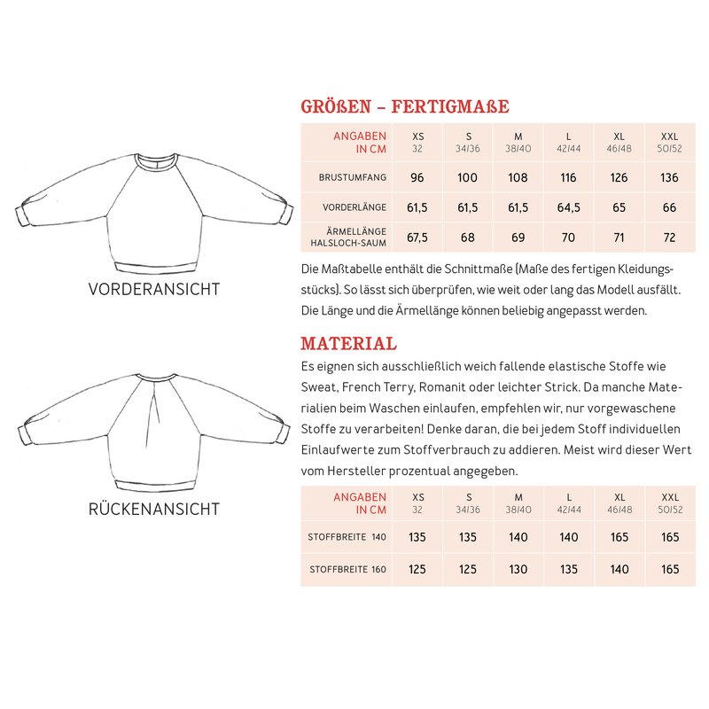 Es eignen sich mitteldicke, weich fallende elastische Stoffe wie Sweat, French Terry oder Strick.