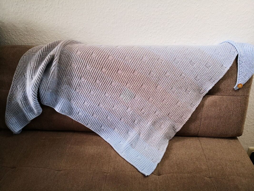 Wie immer gilt: die fertige Größe und der Verbrauch sind neben der Fadenanzahl (Stärke der Wolle) und Nadelstärke stark abhängig vom eigenen Arbeitsstil.