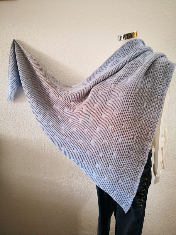 Das Tuch kann kleiner, aber auch größer gearbeitet werden, je nachdem wieviel Garn du verwendest.