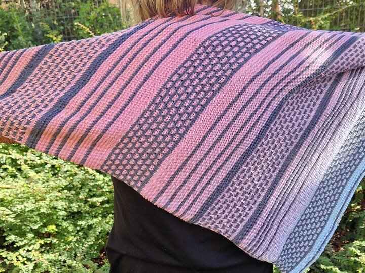 Gestrickt mit 2 kontrastreichen Farben bzw. Verlaufsfarben.