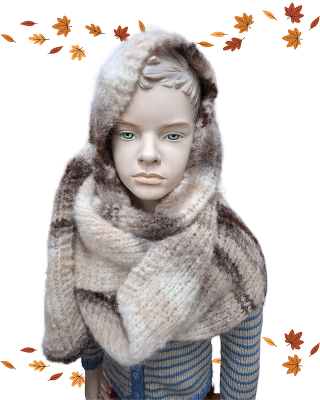 Der lange Schal und die Kapuze machen das Teil zum idealen Begleiter im Herbst und Winter.