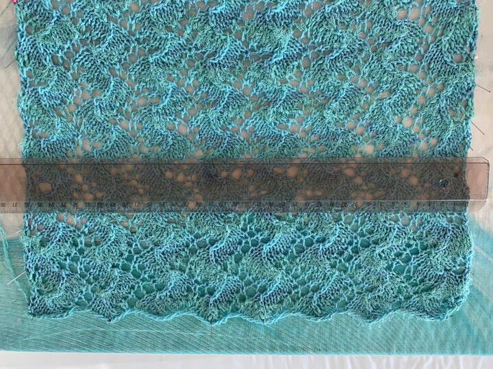 Maschenprobe: Ein Knäuel reicht für ein Strickstück von 8 Rapporten in der Breite mal 7 Rapporten in der Höhe (56 Rapporte).