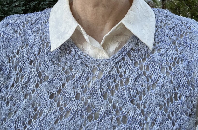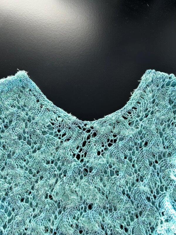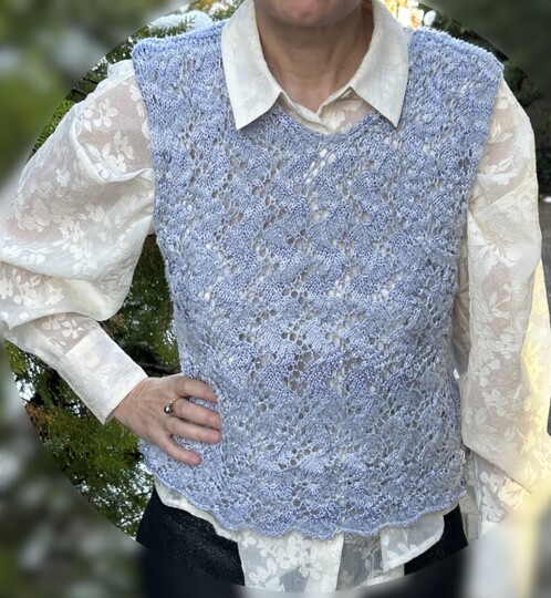 Das Muster dieses Pullunders mit mediterranem Flair erinnert an Spiralmuscheln. Die Vorlage zeichnet sich aus durch einen fließenden Musterübergang in den Halsausschnitt . An der Unterkante bildet sich ein schönes Wellenmuster. Der vordere und der rückwärtige Halsausschnitt werden identisch gearbeitet.