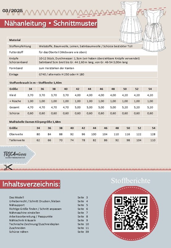 Schnittmuster Dirndl Fleur Gr. 34–54 – Variables Leinenkleid mit Rüschenrock, Flügelärmel und Schürze
