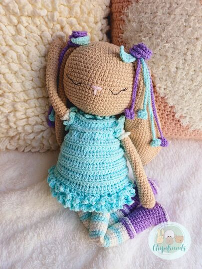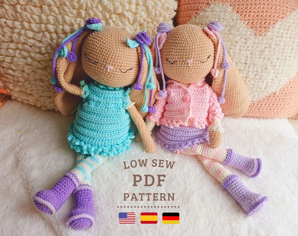 Mit dieser klaren und detaillierten Häkelanleitung inklusive Video-Tutorials kannst du diese bezaubernden Hasen mit zwei Sets Kleidung herstellen.