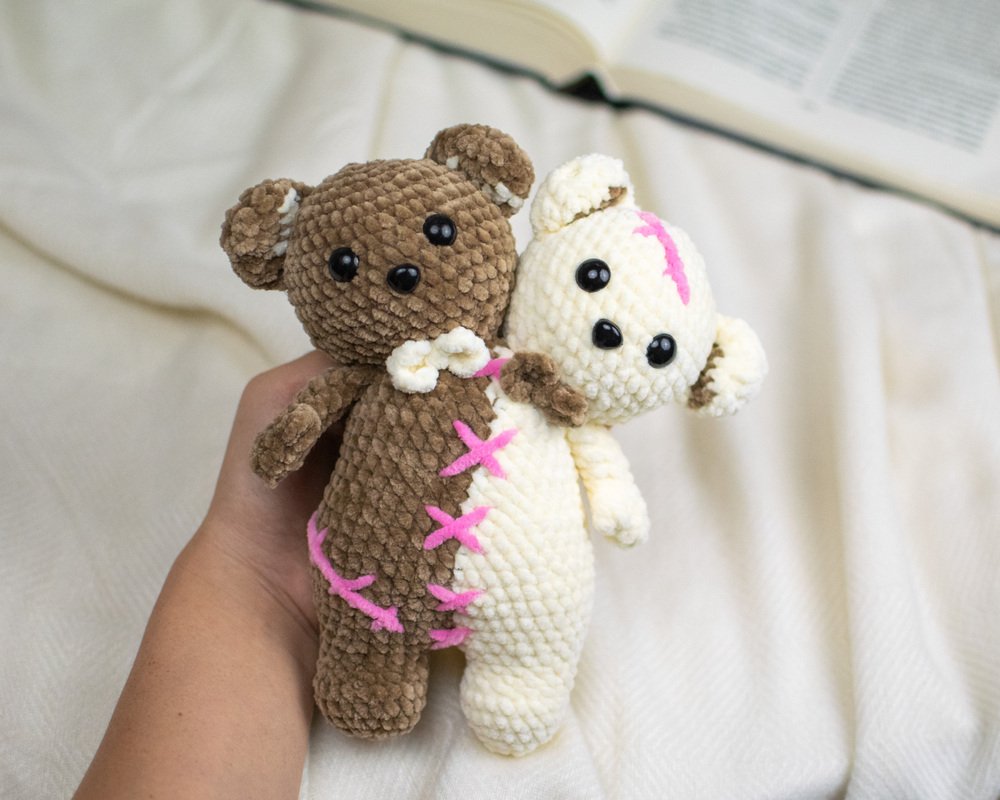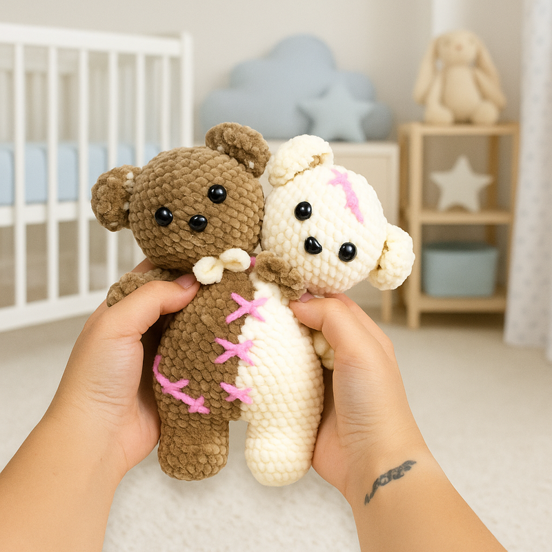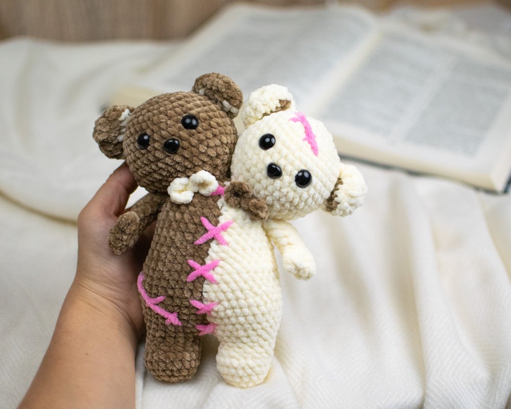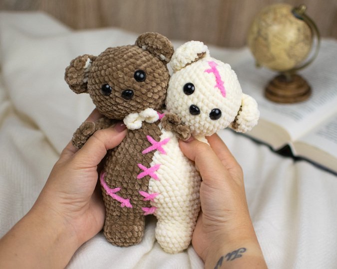 Mit dieser Häkelanleitung kannst du den außergewöhnlichen „Zwillingsbear“ selbst herstellen – einen süßen Amigurumi-Bären mit zwei Köpfen. Schritt für Schritt wird erklärt, wie du den Körper, die Köpfe, Arme, Ohren und kleine Details wie Schleifen und Nähte häkeln kannst.