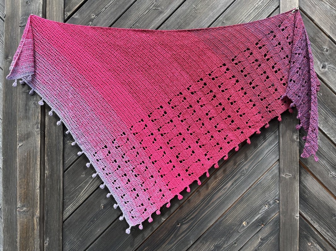 Mad Check ist ein flott gehäkeltes anfängerfreundliches Dreieckstuch mit einem simplen Muster und einer süßen Bommelkante, die direkt mitgehäkelt wird. Das Tuch ist ist chillig zu häkeln und passend für jede Jahreszeit.