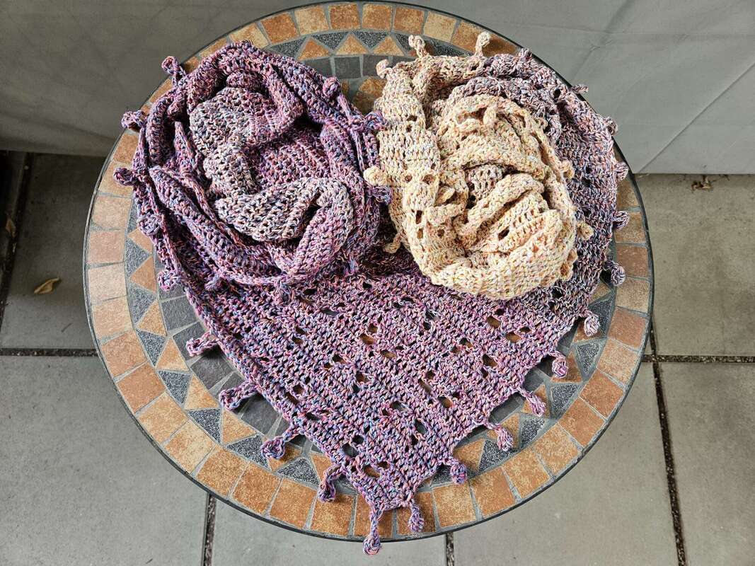 Du kannst das Tuch mit beliebigem Garn häkeln. Die benötigte Garnmenge ist abhängig von der Wunschgröße, dem gewählten Material und deinem persönlichen Häkelstil.