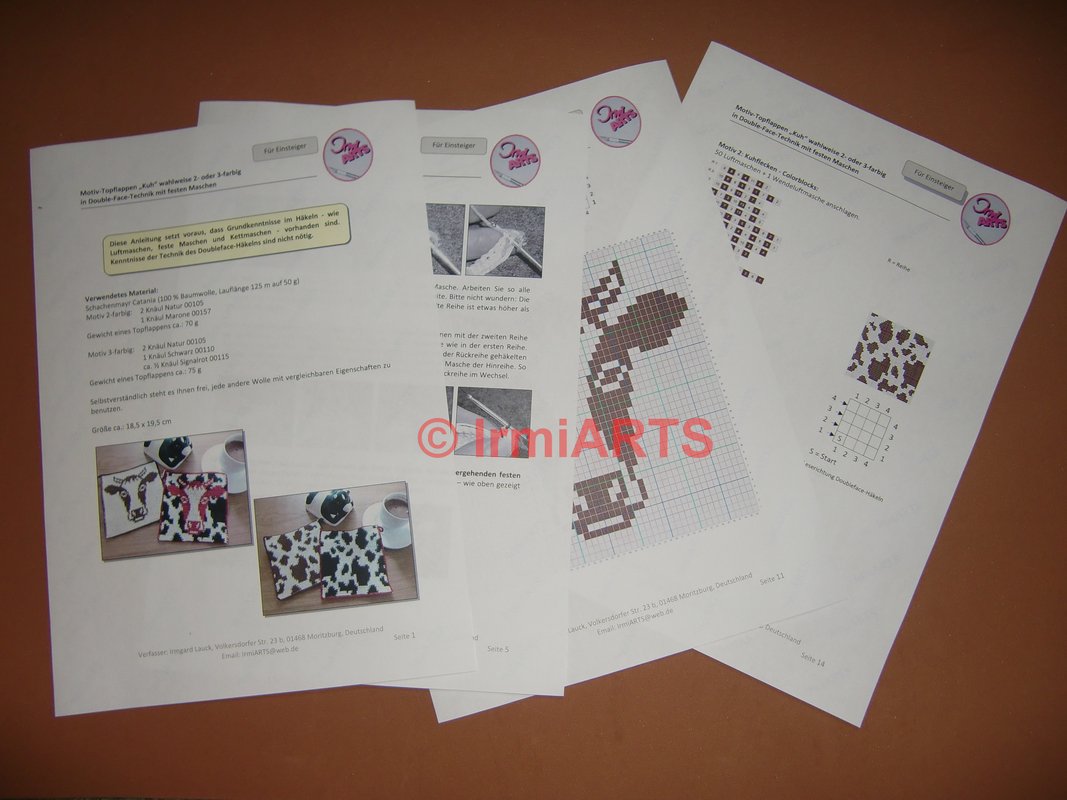 Mit diesem Download erhalten Sie eine ausführliche, 18-seitige PDF-Datei mit der Beschreibung und Fotos der Technik in deutsch und englisch (US-Terminologie). Die Beschreibung enthält außerdem grafische Zähl-Vorlagen und Color-Block-Angaben für jede Reihe der einzelnen Motive. Zusätzlich wird eine Anleitung der Grundtechnik mit Fotos und Grafiken sowie ein Video-Tutorial mit der Grundtechnik des Doubleface-Häkelns zur Verfügung gestellt. Die Dateien sind nur für den persönlichen Gebrauch bestimmt!