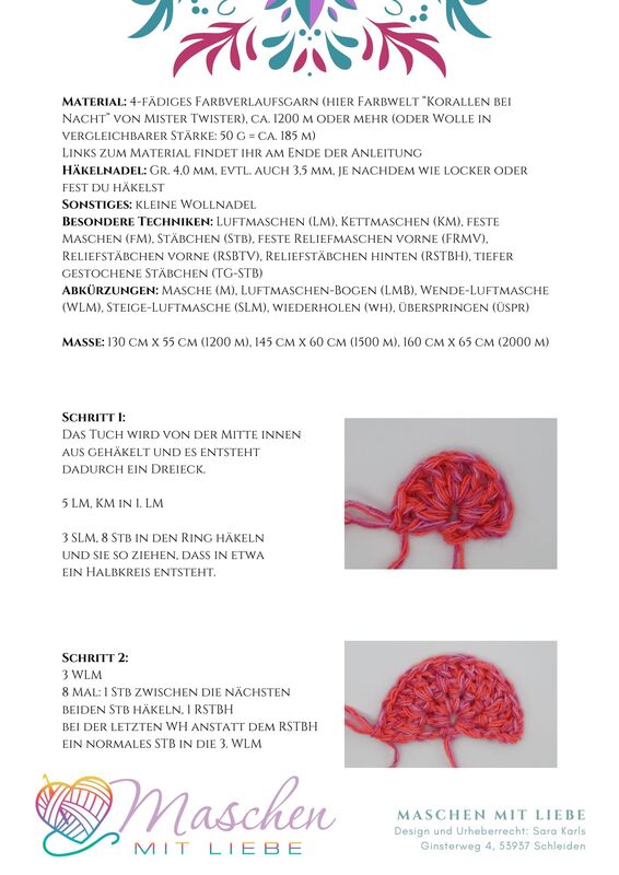Häkelanleitung Tuch "Aurelia" mit Muschelmuster für Fortgeschrittene