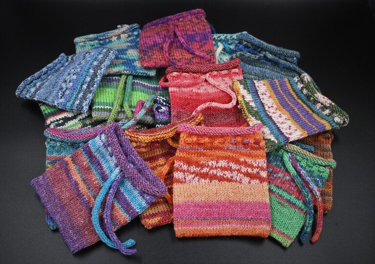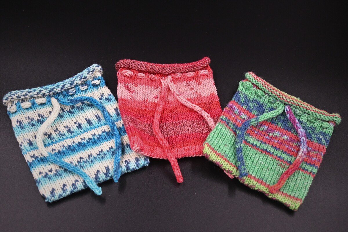 • Materialbedarf: ca. 15 g Sockenwolle pro Beutel