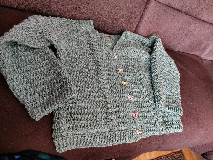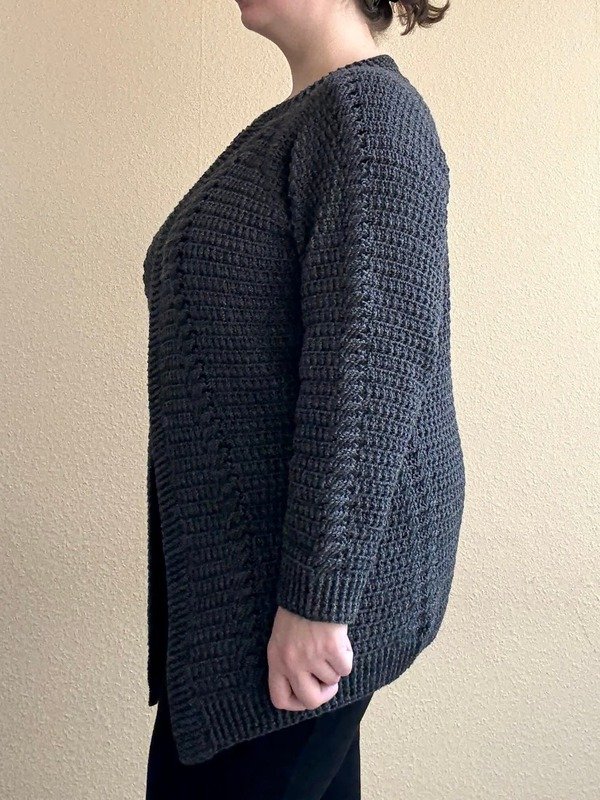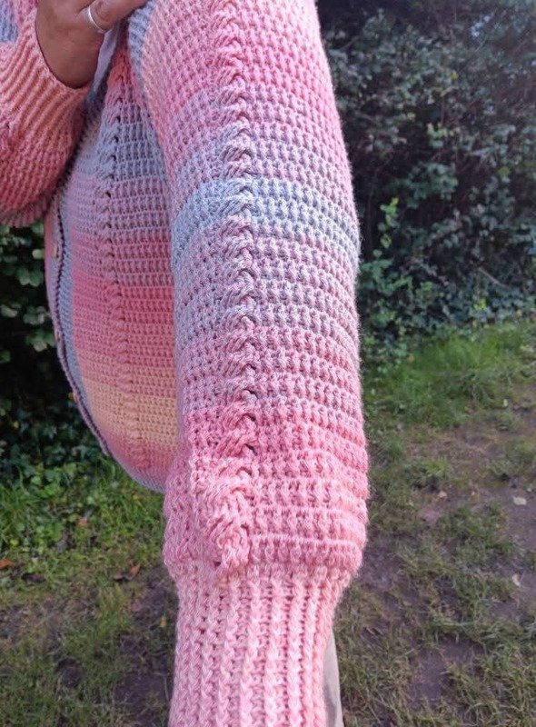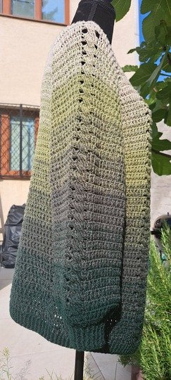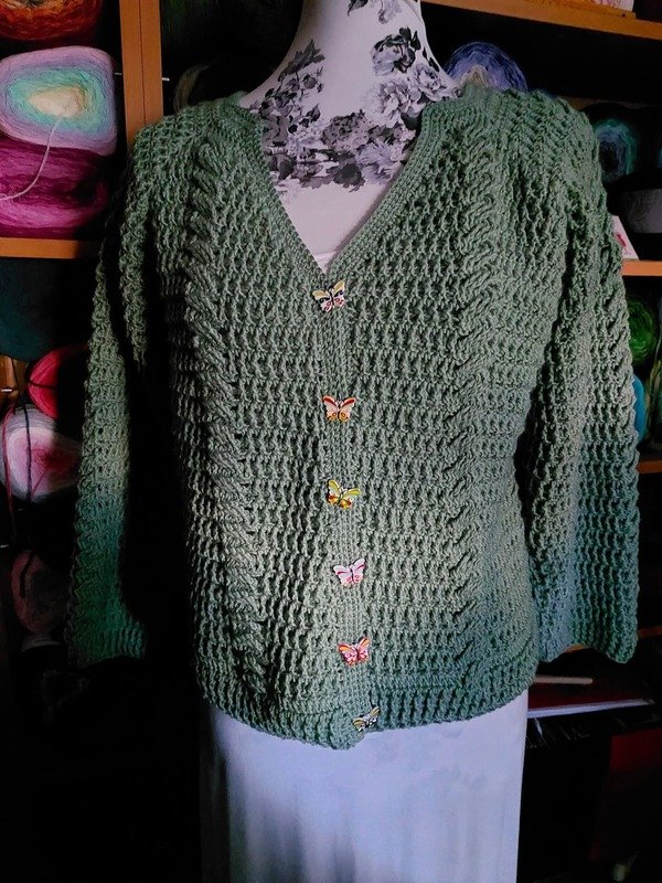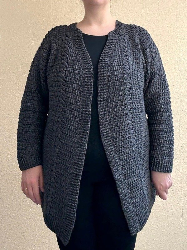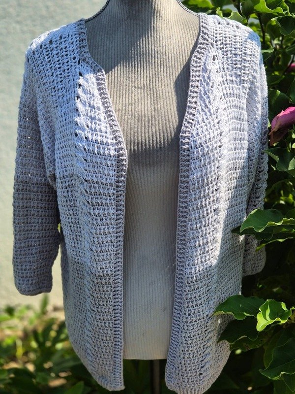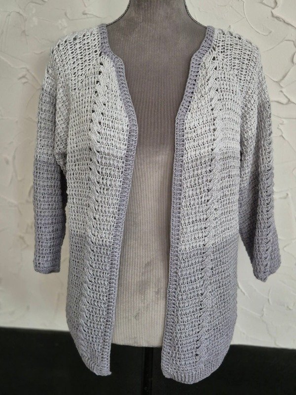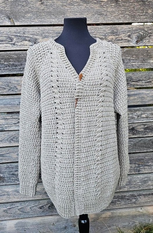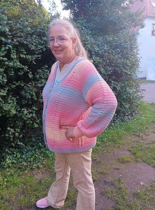 Die Häkelanleitung für die RVO (Raglan von oben) Jacke Malina beinhaltet