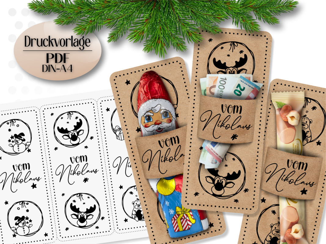 Druckvorlage vom Nikolaus Schokoladenverpackung Gutscheinverpackung Geldscheinverpackung PDF
