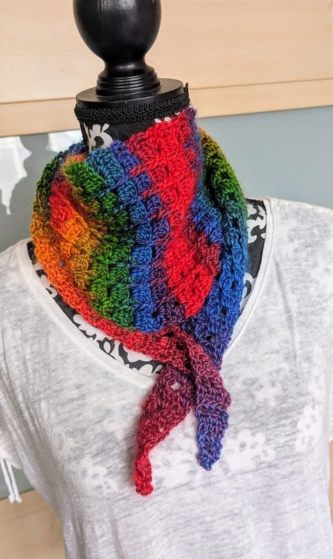Dieses vielseitige Tuch ist nicht nur ein wahrer Blickfang, sondern auch perfekt, um deine restlichen Wollknäuel kreativ zu verwerten.