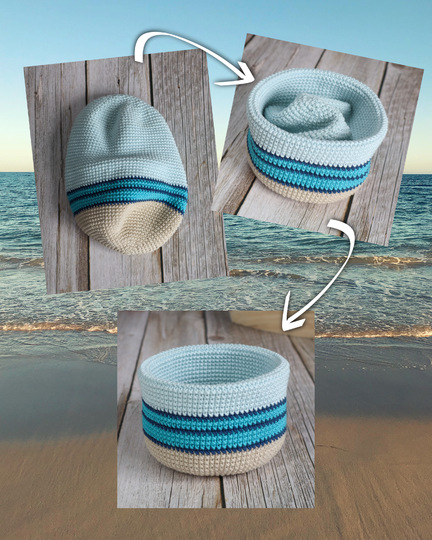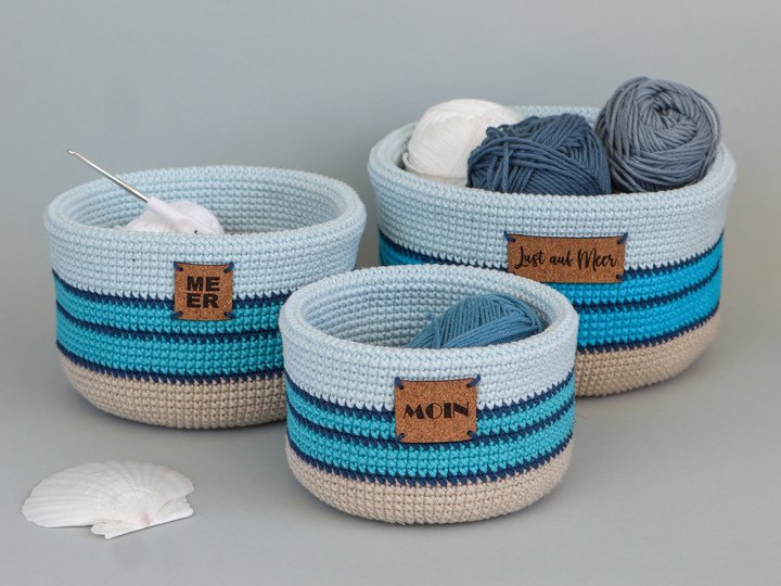 Du erhältst eine digitale, deutschsprachige Häkelanleitung für ein Aufbewahrungskörbchen in 3 verschiedenen Größen.