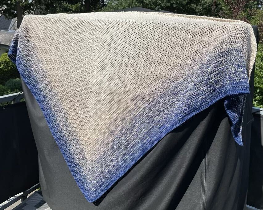 Mit dünnerem Faden wird das Tuch enger und kleiner gehäkelt, mit dickerer Wolle entsprechend größer. Ihr solltet dann auch auf die entsprechende Nadelstärke achten.