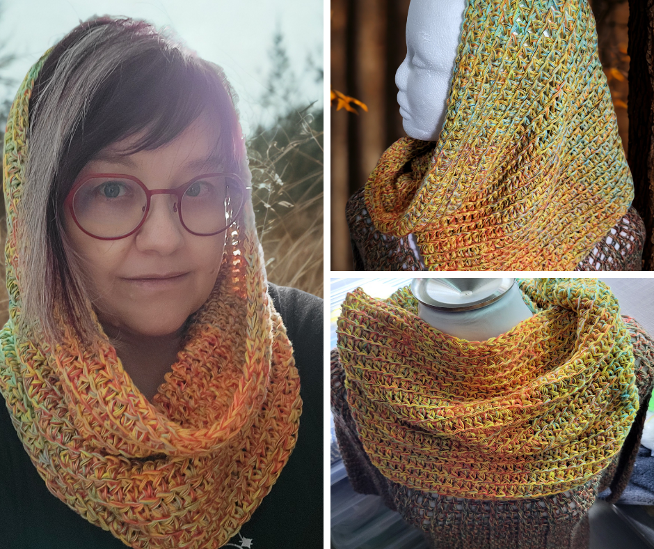 Mein Wollverbrauch basiert auf meiner Größe, daher kann dein Verbrauch variieren. Der Snood / Loop kann mit jeder Art von Wolle gehäkelt werden