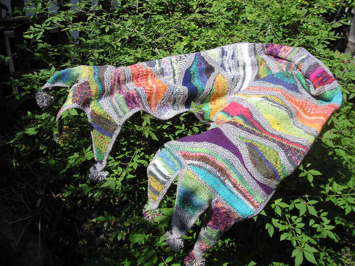 Anleitung zum Stricken des Schals "Karibik" aus 4-fädiger Sockenwolle mit verkürzten Reihen.
