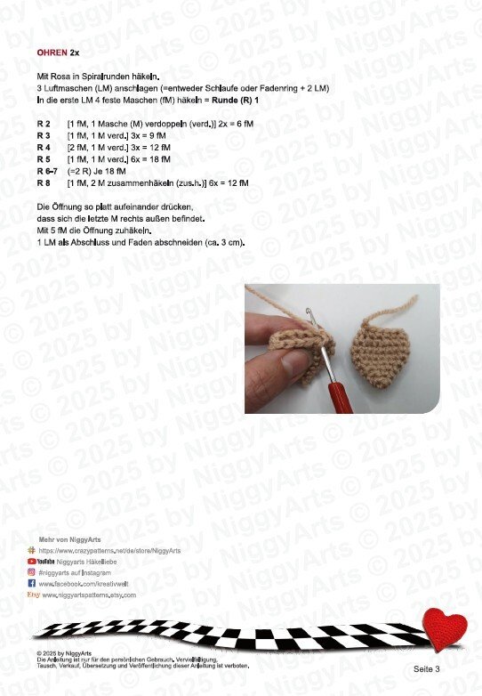 Häkelerfahrungen sind erforderlich, denn die hier zu erwerbende Anleitung beinhaltet keinen Häkelgrundkurs.