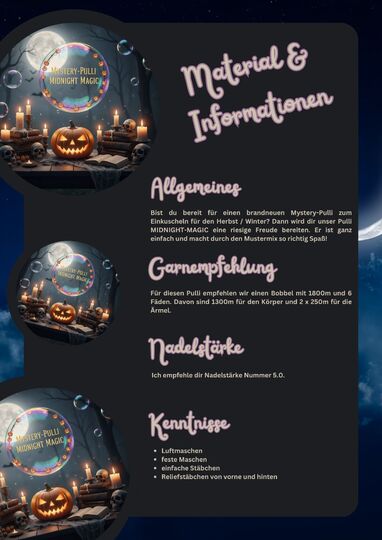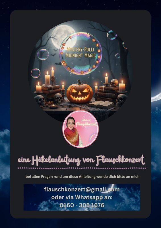 Ob du die Anleitung allein genießt oder gemeinsam mit anderen arbeitest – Midnight Magic lädt dich ein, dich von der Atmosphäre der Mitternacht inspirieren zu lassen, dich in warme Maschen zu hüllen und die Magie des Oktobers einzufangen.