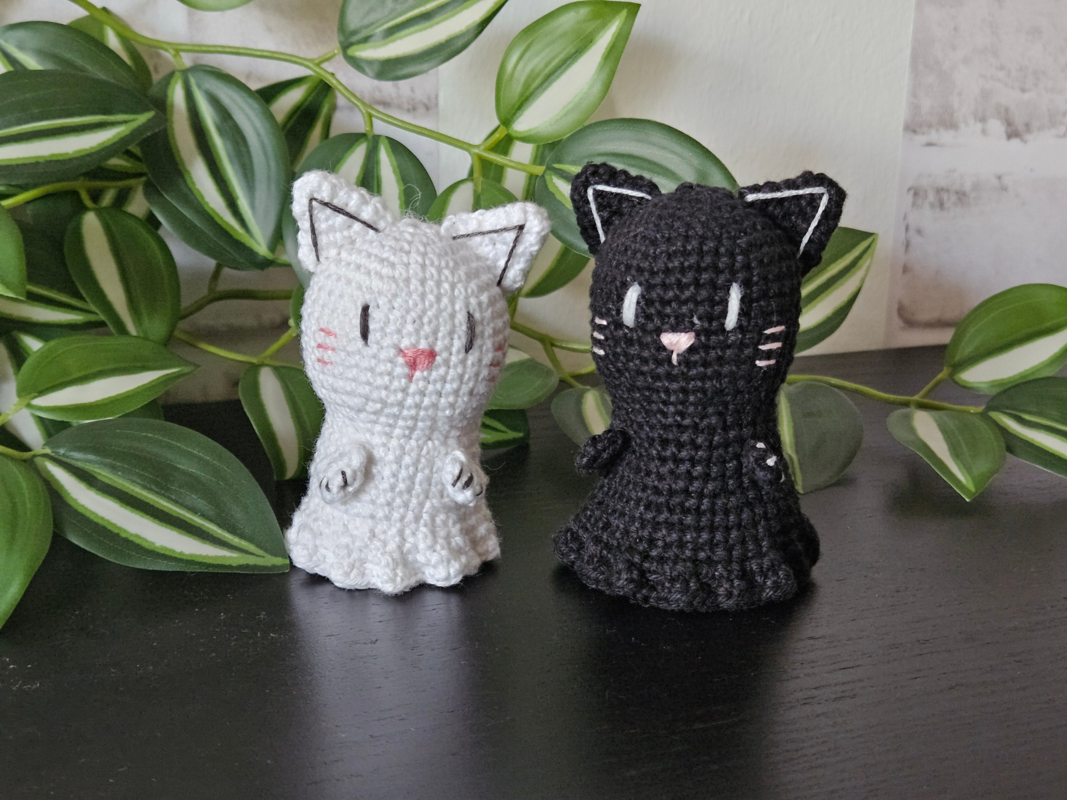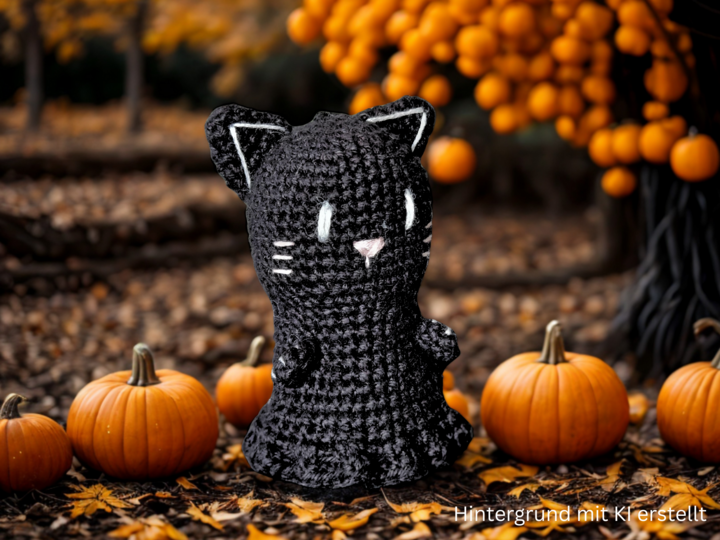 Diese beiden verspielten Begleiter tragen den Zauber des Herbstes und die Freude an Halloween in sich – und genau dieses Gefühl kannst du dir mit meiner Häkelanleitung nach Hause holen. Zwei kleine Katzengeister, die Wärme, Magie und ein Lächeln in dein Zuhause bringen.