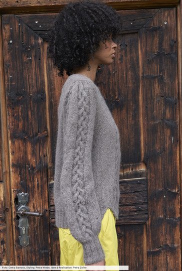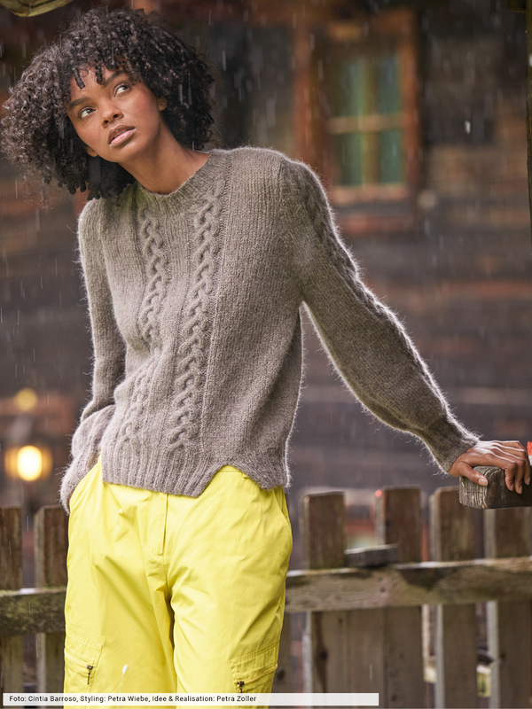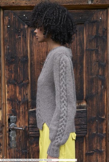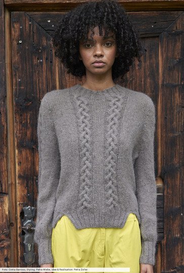 Es sind nicht nur die markanten Zopfstreifen, die bei diesem Pulli aus softem Wintergarn für Aufmerksamkeit sorgen. Auch Details wie Keulenärmel und Schlitze im Taillenbund geben den modischen Touch. Für die Flechtoptik der Zöpfe findest du eine Strickschrift, die dir die Arbeit etwas erleichtert. Tipp: Mache vorher eine kleine Maschenprobe, dann bist du schonmal im "lfow". Aber keine Angst: Dazwischen gibt es immer wieder Glatt-rechts-Partien zum Ausruhen.