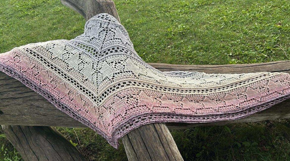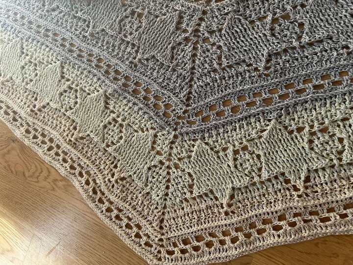 Das Tuch besteht aus drei Abschnitten: dem Anfangsteil, einem Sternenmuster und einem Lochmuster als Zwischenstück.