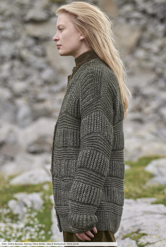 Diese lässige Jacke versprüht durch den Wechsel von "patenten" Längsrippen und kraus rechts gestrickten Querstreifen einen sportlichen Charakter, der aber dennoch Klasse hat. Grund dafür ist das Garn, bei dem dezente Glanzeffekte durch Viskosefasern mitmischen. Elastische Bündchen und schmale Blenden bilden den klassischen Rahmen, farblich ergänzt wird der Look durch sanft schimmernde Knöpfe, die du ganz leicht über das Internet bestellen kannst.