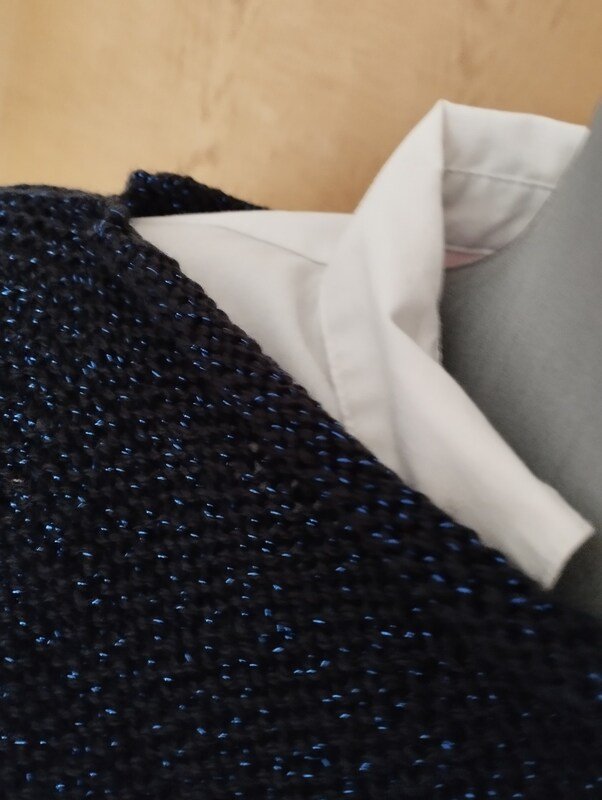 Der Kragen wird hingegen glatt rechts gestrickt, damit er sich nach dem abketten einrollen kann.