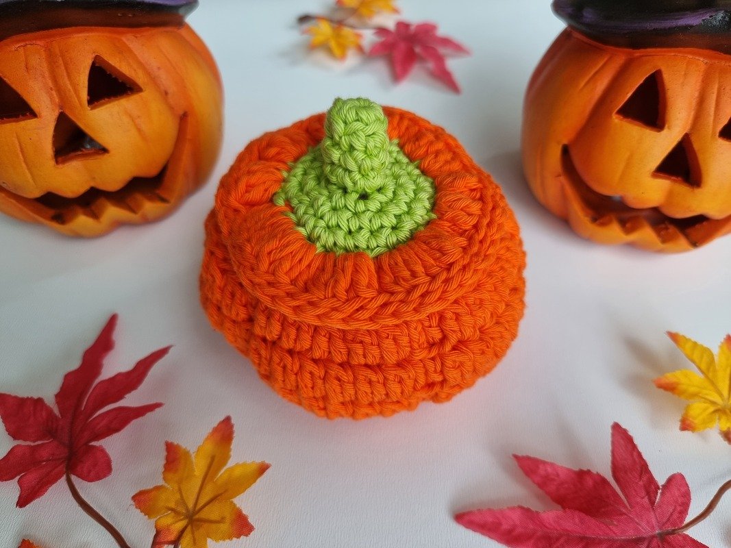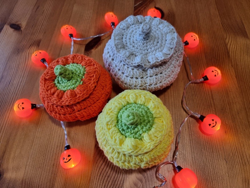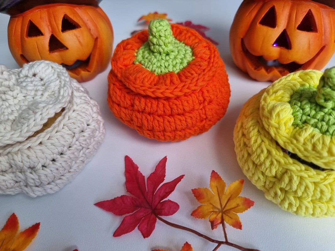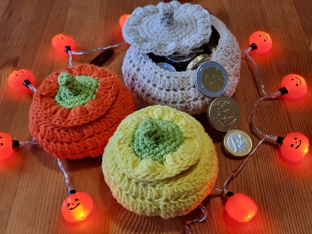 Mit dieser liebevoll gestalteten Häkelanleitung kannst du bezaubernde Kürbis-Körbchen in zwei verschiedenen Größen zaubern.