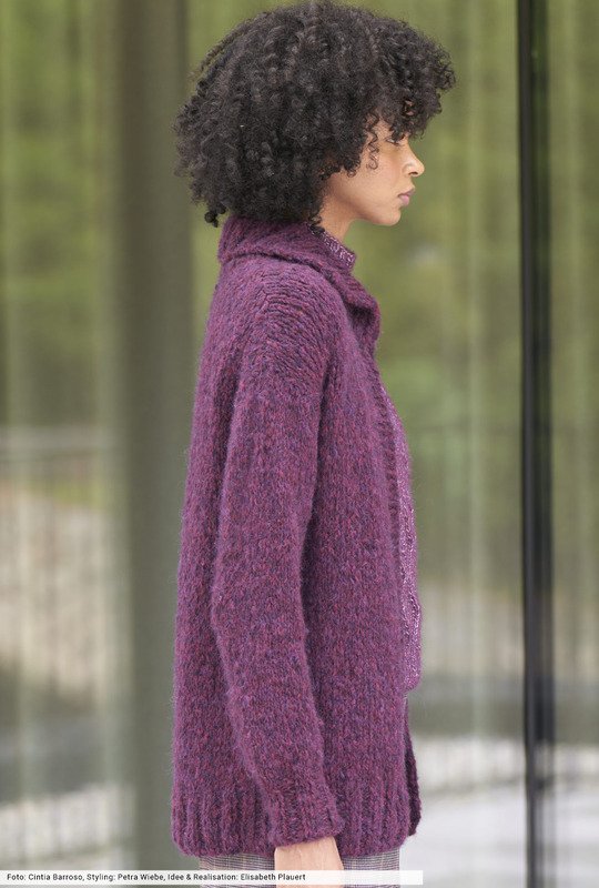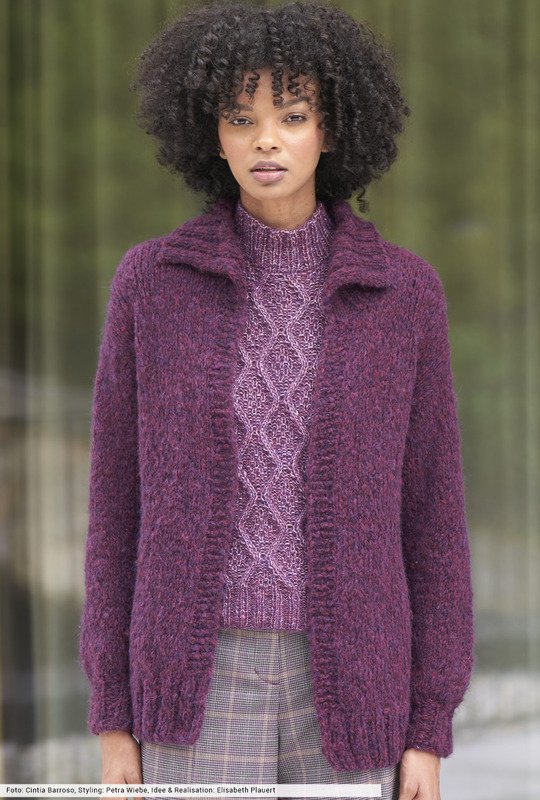 Cool, cozy und voller Charakter: Dieses traumhaft schöne Ensemble lebt vom Spiel mit Kontrasten. Der Pullunder entsteht durch ein markantes Rautenmuster aus Bicolor-Effekten in Aubergine mit Wollweiß und hat einen schmeichelnden Stehkragen. Dazu passt die Jacke aus einem soften Flauschgarn, bei dem man getrost auf schwierige Muster verzichten kann. Dafür hat sie elastische Rippenbündchen und einen hohen Kragen, der die Halspartie weich umschmeichelt.