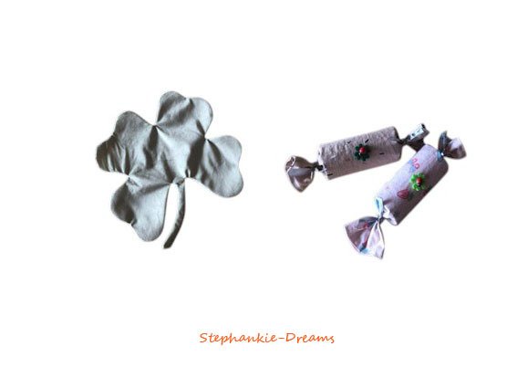 Die Girlande, Knallbonbons, Deckchen und der Zylinder werden aus Baumwollstoffen genäht. Das Schwein und der Schornsteinfeger werden aus Plüschstoffen, wie Nicki oder Minkeyfleece genäht. Die Jacke, Hose und Stiefel vom Schornsteinfeger werden aus Jersey oder French Terry genäht.