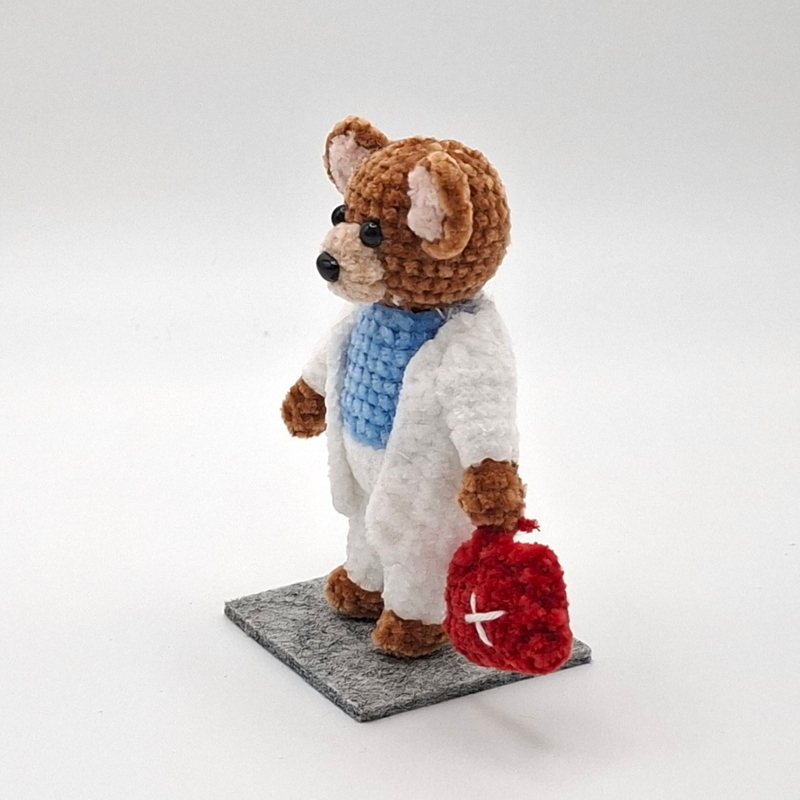Das ist eine Häkelanleitung für einen kleinen Arzt-Bären.