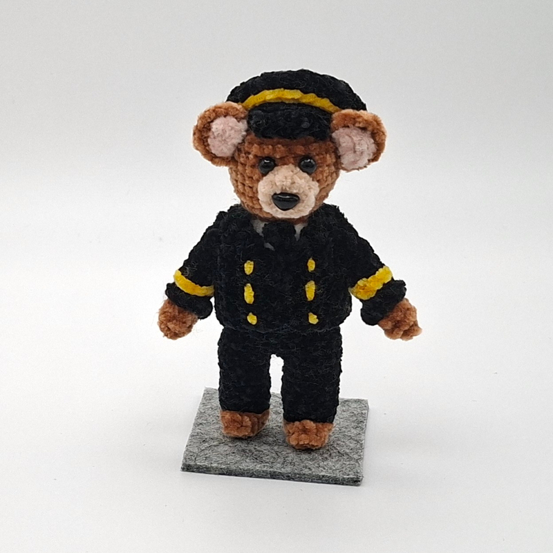 Das ist eine Häkelanleitung für einen kleinen Pilot-Bären.