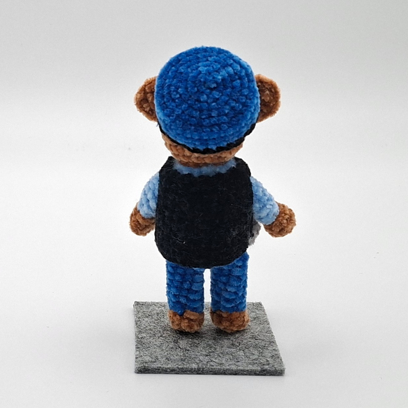 Das ist eine Häkelanleitung für einen kleinen Polizei-Bären.
