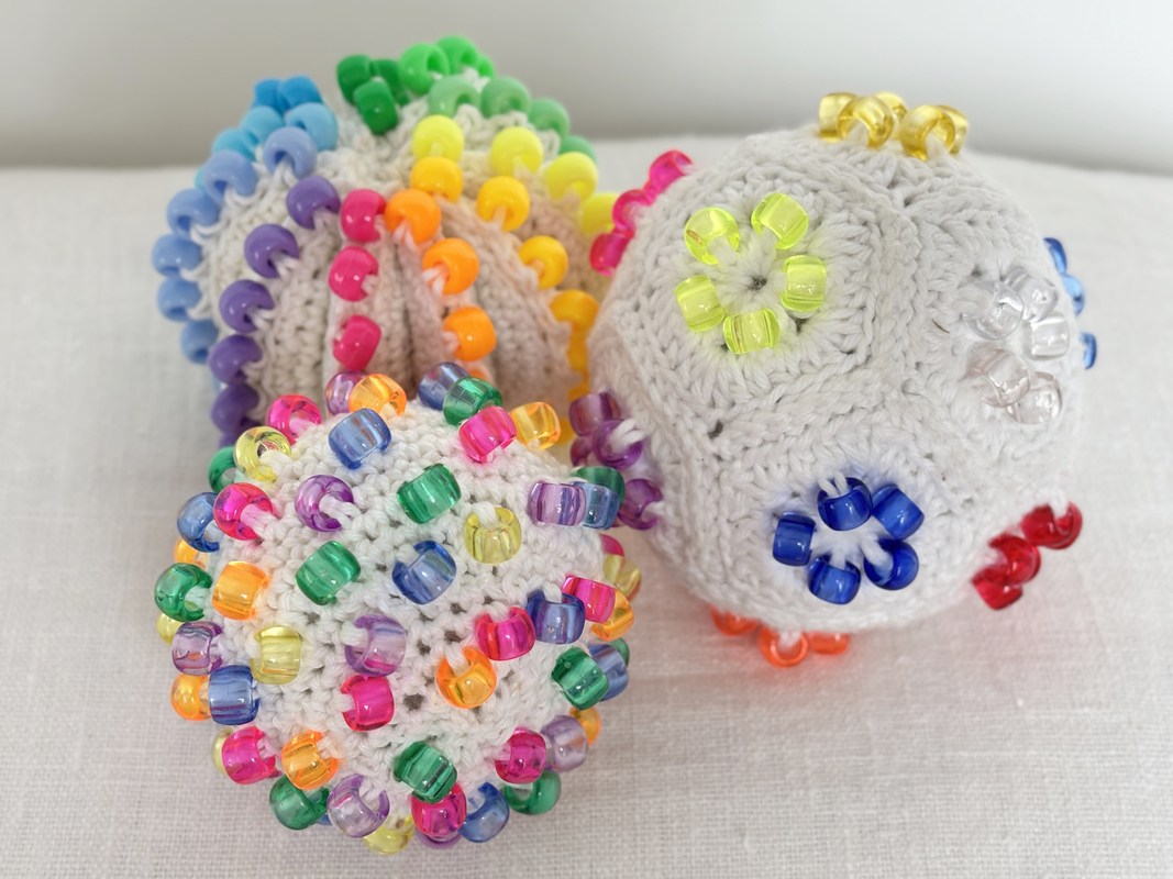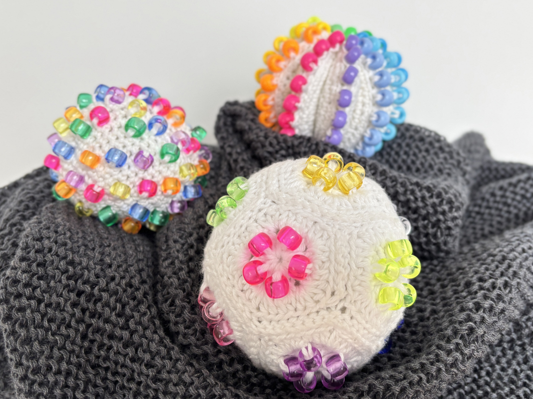 Jeder Ball ist anders gearbeitet – perfekt zum Kneten, Drücken und Fühlen. Die eingehäkelten bunten Perlen sorgen für zusätzliche sensorische Reize und machen die Bälle zu einem tollen DIY-Projekt für Kinder, Erwachsene, Menschen mit ADHS oder Autismus – oder einfach für alle, die gerne basteln und entspannen.