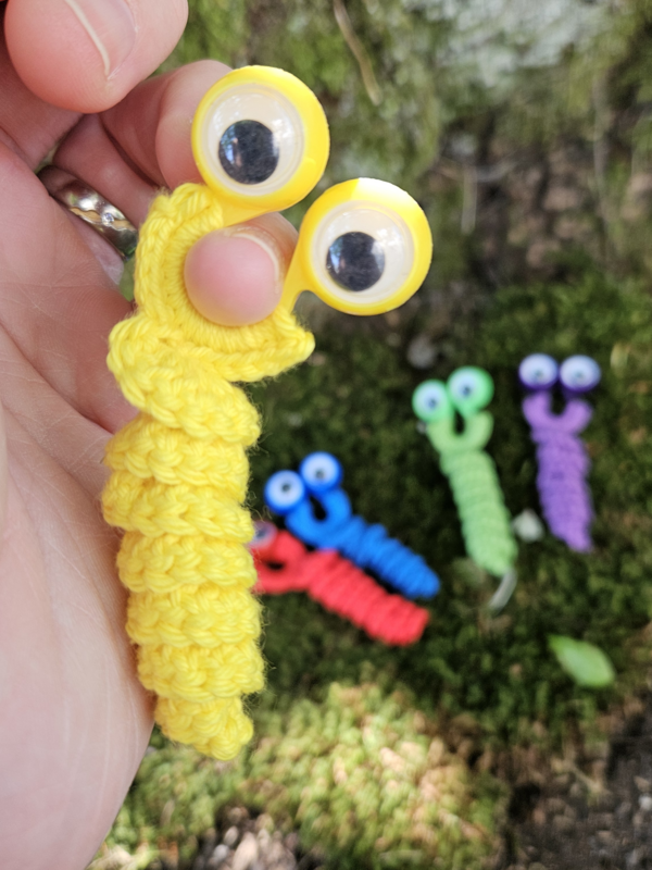 Meine Würmchen haben inkl. Augen eine Länge von ca. 9-10 cm. Du kannst diese aber auch ganz individuell kürzer oder länger gestalten.