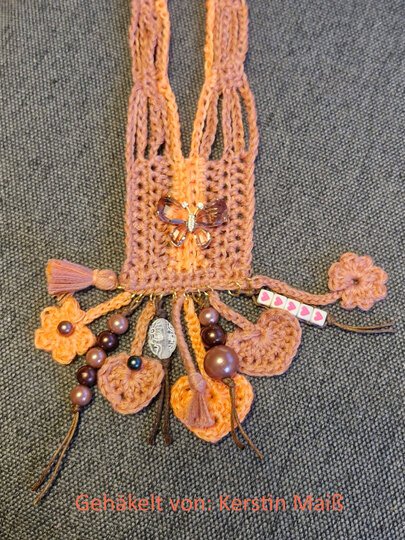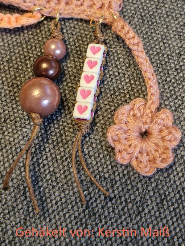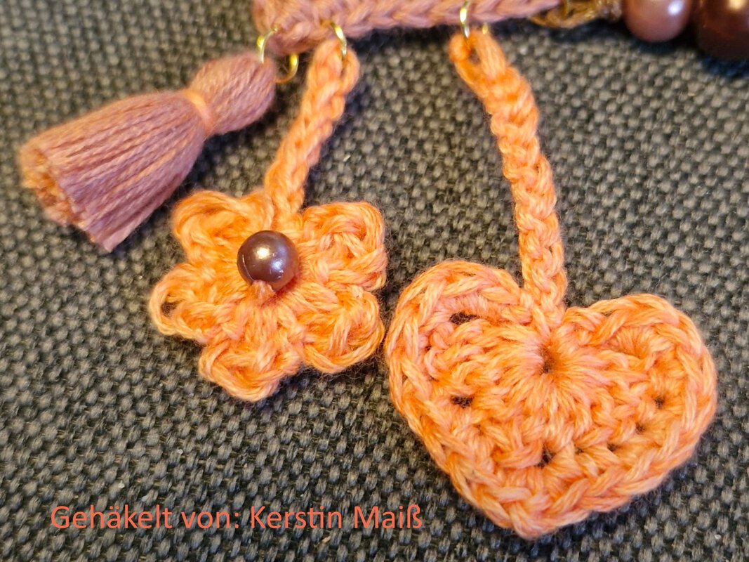 Zusätzlich können Perlen aufgenäht oder aufgehäkelt werden, theoretisch können aber auch nnur 13 Herzchen gehäkelt werden. Alles ist erlaubt, was gefällt.