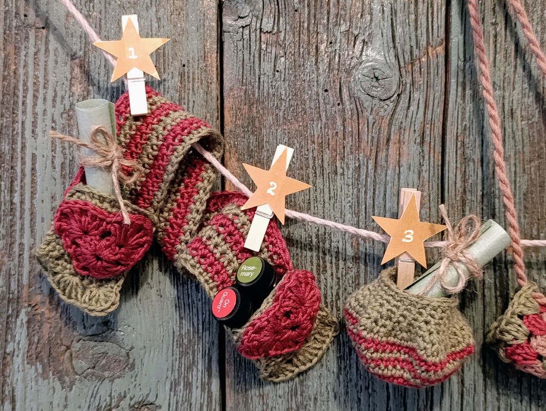 Mit dieser Anleitung kannst du einen Adventskalender häkeln und dir oder anderen damit eine Freude machen.