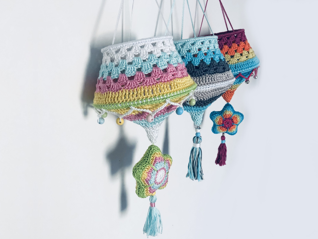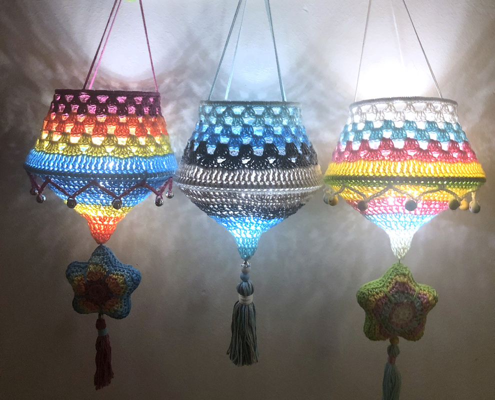 Lasst uns zusammen Farbe und Lichter in unser Zuhause bringen – mit diesen gehäkelten bunten Lampions im angesagten bunten Boho-Stil.
