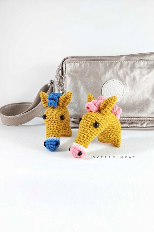 Horse Head Keychain: - Yarn: I used – YarnArt JEANS 55% Cotton 45% Pac (50g = 160m) - 2,5 mm crochet hook - Polyester fiberfill for stuffing - Yarn needle, scissors, stitch markers or a piece of yarn, pins - 8 mm plastic eyes - keyring accessories.