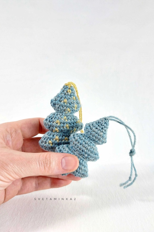 With this detailed pattern you can create a mini Christmas tree in different styles: a simple, elegant one-color tree or a festive tree with imitation of garlands or snowflakes with a cute little 'star' using a contrast color yarn.