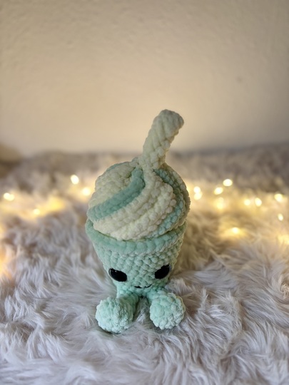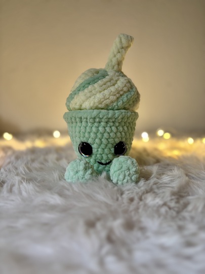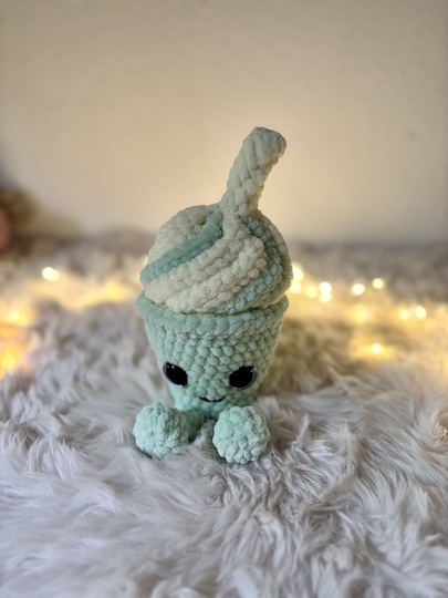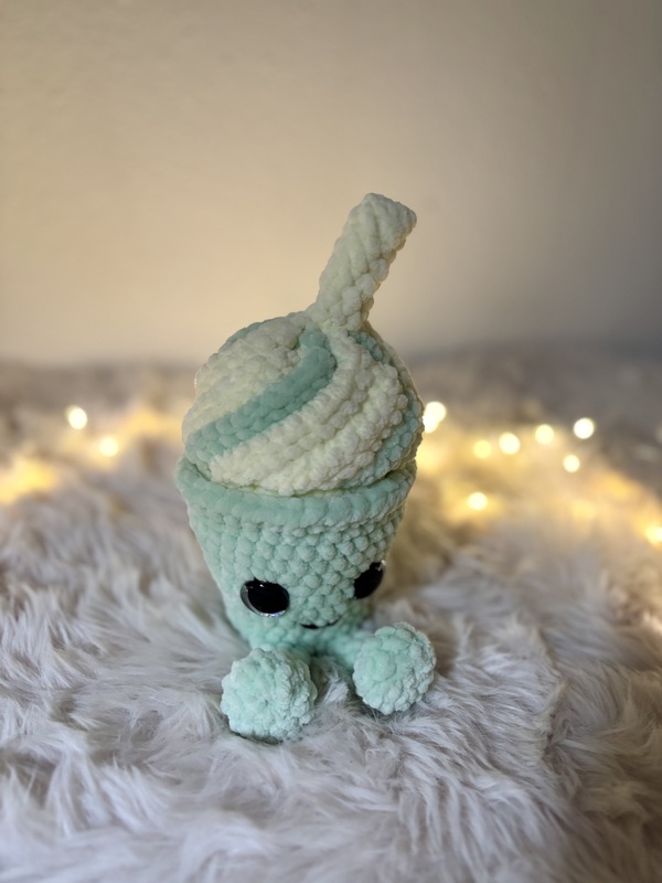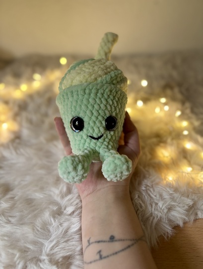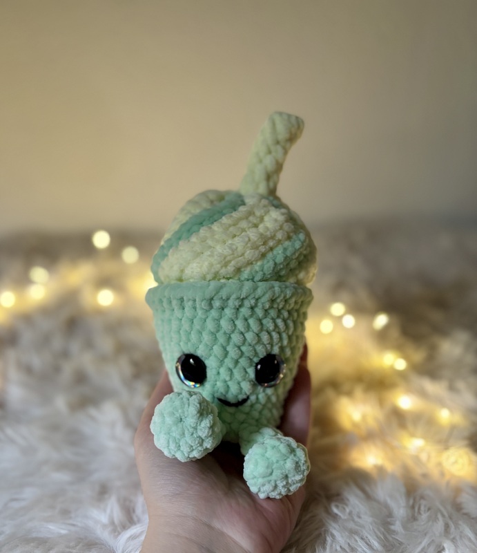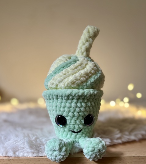Mit seiner weichen Sahne-Wirbelspitze, dem frischen Matcha-Grün und dem kleinen Strohhalm ist Matchy-Latty das perfekte Projekt für alle, die niedliche Amigurumis, süße Deko und Kaffee- oder Eis-Designs lieben.