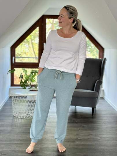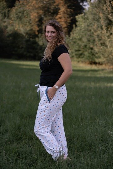 Ob sportlich, schlicht oder individuell gestaltet: Mit diesem Schnittmuster kannst du deine ganz persönliche Lieblingshose nähen – perfekt abgestimmt auf deinen Stil und deine Bedürfnisse. Ideal für Nähanfängerinnen und Fortgeschrittene!