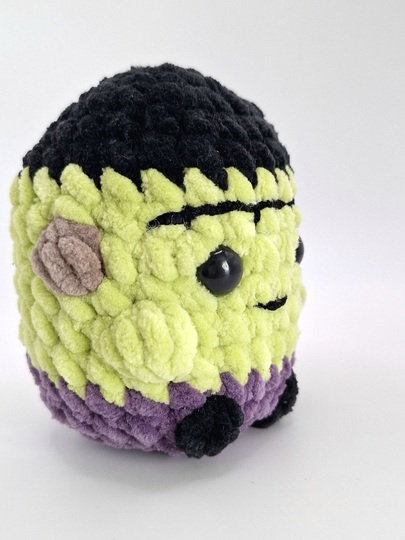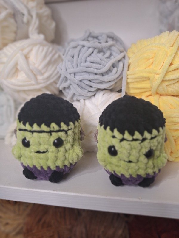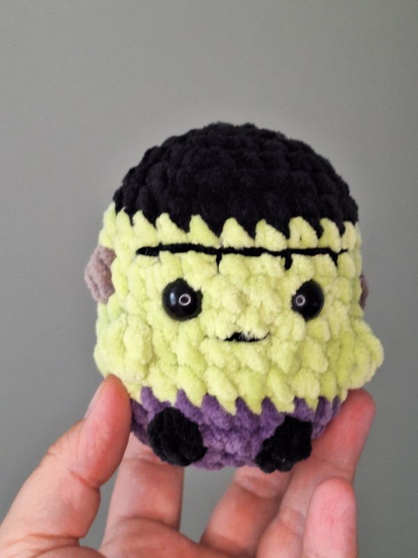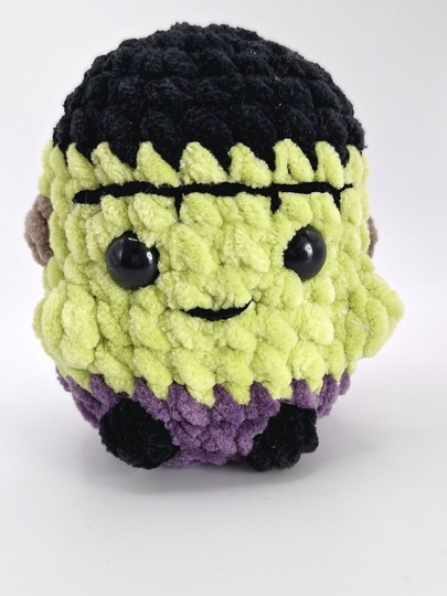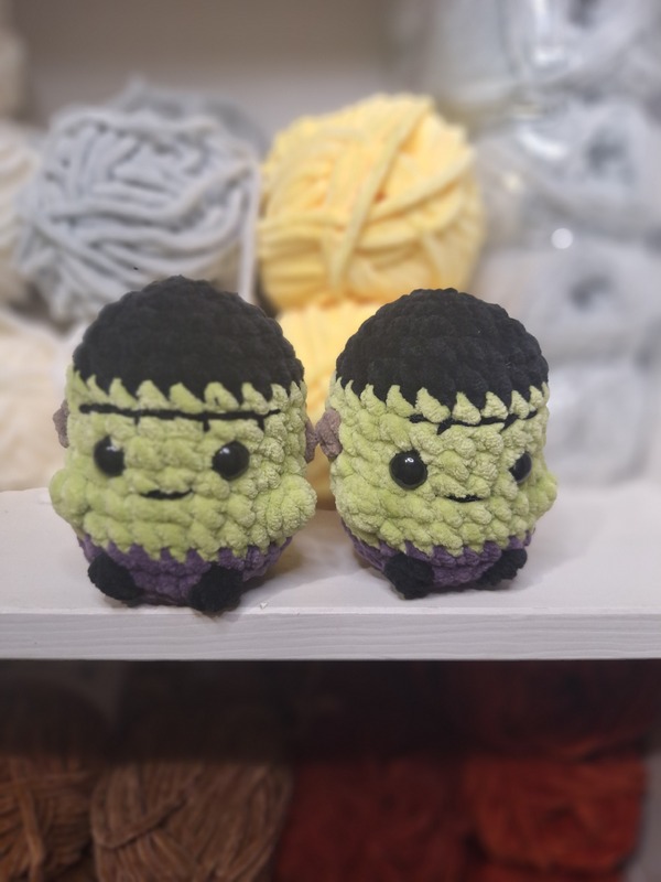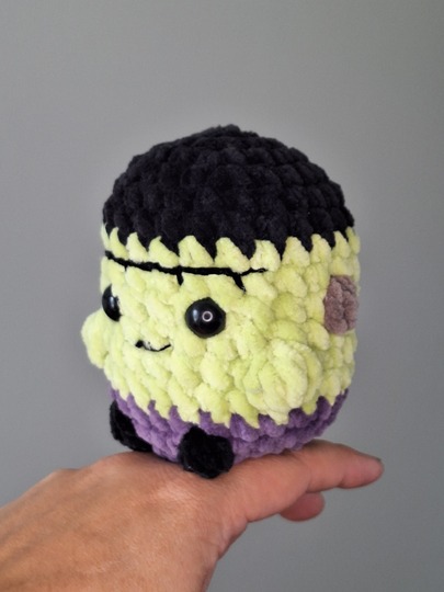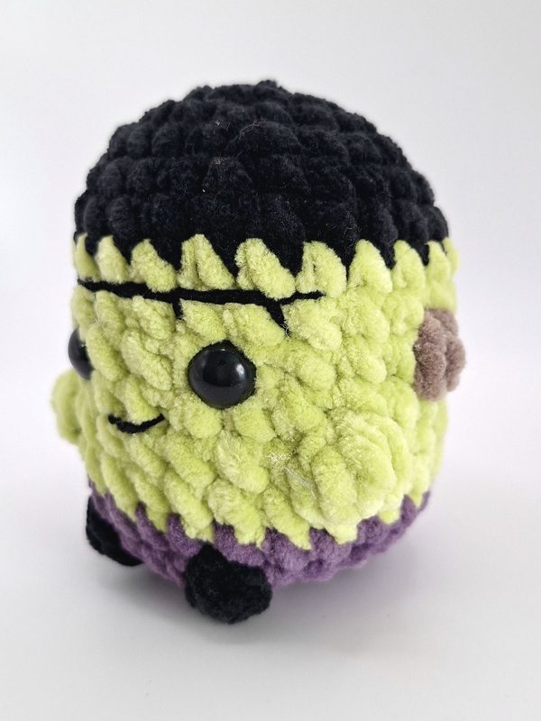 Diese detaillierte Häkelanleitung ermöglicht dir, einen kuscheligen Mini Frankenstein herzustellen.
