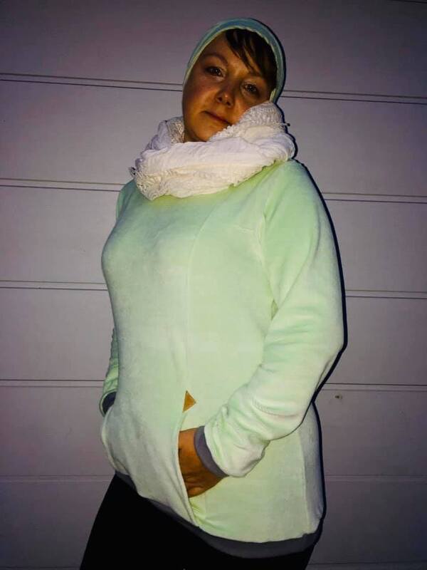Dazu kann man dann wählen, ob man sich den klassischen Hoodie mit überlappender Kapuze näht, oder doch lieber einen kuscheligen Pulli mit Schalkragen oder normalem Halsbündchen.