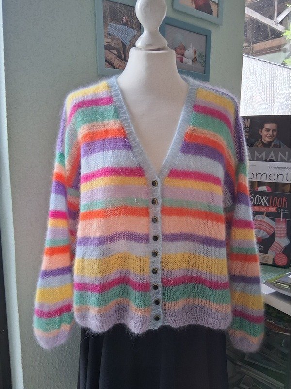 Lacy ist eine anfangertaugliche Jacke mit einem leichten Schnitt. Gestrickt mit Lace Garn überzeugt sie durch ihre Leichtigkeit im wahrsten Sinne. Luftig und leicht wärmt sie trotz alle dem. Die Länge ist variabel. Ich habe mich fü eine kürzere Version entschieden, da sie so auch gut zu Kleidern bzw. Röcken zu tragen ist. Der einzige Nachteil..... Man muss ziemlich viele Fäden vernähen.
