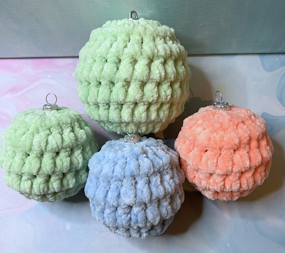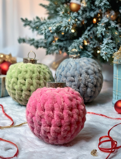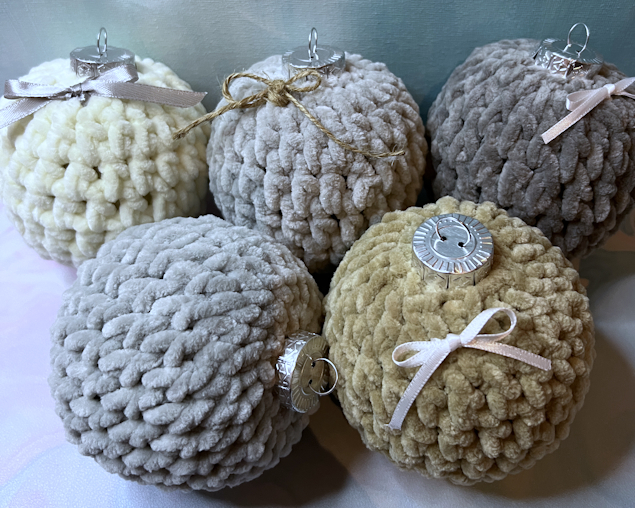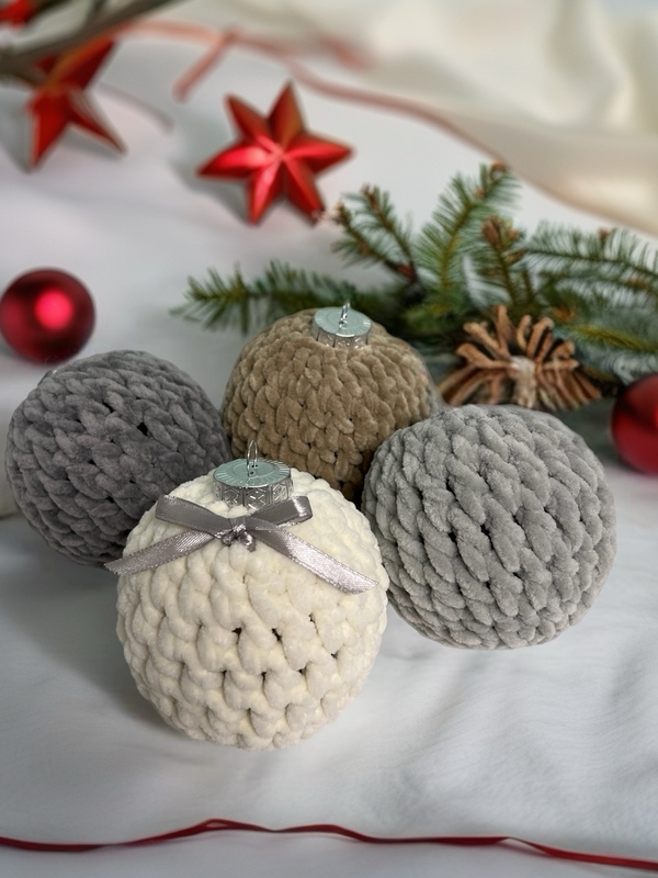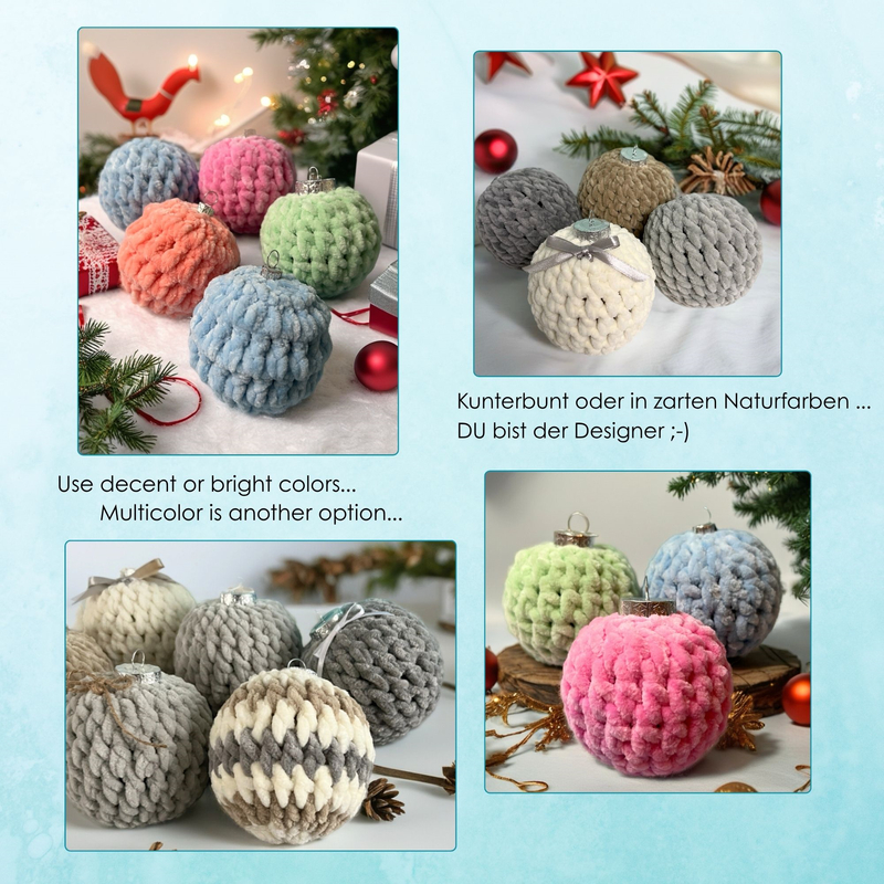 Chenillegarn (LL 120 m / 100 g), Christbaumkugel-Rohlinge in 6 oder 8 cm