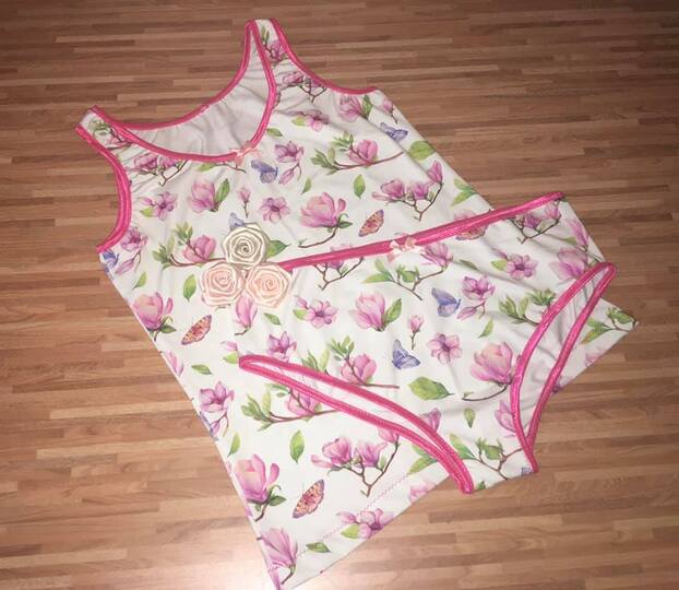 Ein einfaches Wäsche-Set mit einem engen Hemdchen und einem Slip im Pantystil.