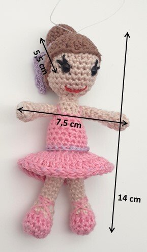 Die Ballerina ist ca. 14 cm hoch und 7,5 cm breit, siehe Foto.